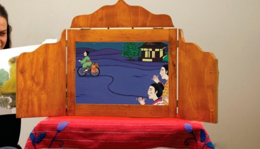 El kamishibai es un teatrillo japonés que se usa desde la antigüedad para contar historias. El mismo tiene dos o tres puertas y contiene en su interior láminas pintadas a mano, que se remueven a medida que la historia transcurre.