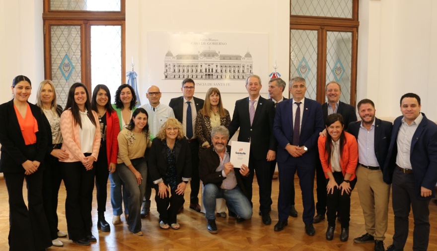 El Intendente Daniel Tonelli e integrantes de su gabinete participaron hoy del acto realizado en Casa de Gobierno en el marco del Programa 1000 aulas, mediante el cual el Ministerio de Educación de la Provincia firmó convenios para la construcción de 47 aulas en 45 localidades santafesinas.