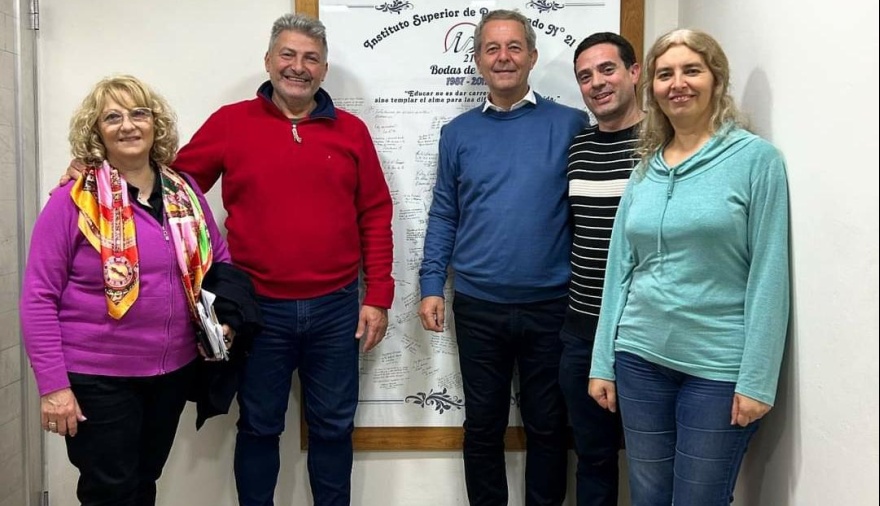 El intendente Daniel Tonelli y miembros de su gabinete mantuvieron un encuentro informativo en la Escuela Técnica Nº 450 “Ejército Argentino” y en el Instituto Superior de Profesorado Nº 21 “Posta de San Martín” para avanzar con la propuesta educativa y formativa que se llevará adelante a través de la Universidad Tecnológica Nacional de Rosario.