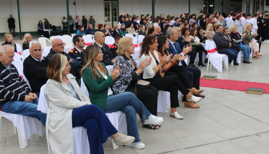 La Directora Interina, Miriam D'Amico, detalló a Más Noticias que el mismo jueves programaron dos actos, uno a las 8:30 de la mañana y otro a las 16 con la presencia de los alumnos y sus padres, “ese día hay clases normales; está invitada la supervisora, algunas autoridades ministeriales, el intendente con su equipo de trabajo y concejales, Bomberos Voluntarios, directivos de otras escuelas y la invitación para el acto protocolar fue destinada a instituciones educativas y no educativas”.
