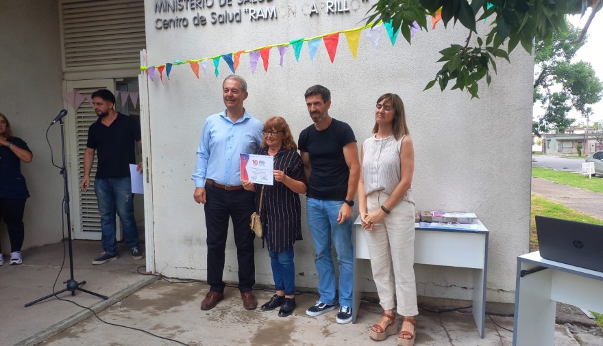 Luego de la presentación de la placa de la sala de espera, presentaron el saludo de los concejales de nuestra ciudad que felicitaron “al Centro de Salud Ramón Carrillo en su 10° aniversario, destacando la vasta trayectoria dedicada a la salud pública. Firman en la placa los ediles Miguel Estéfano, Matías Atoresi, Miguel Coradini, Damián Salinas, Sebastián Ghione y el presidente del cuerpo José Luis Murina”.