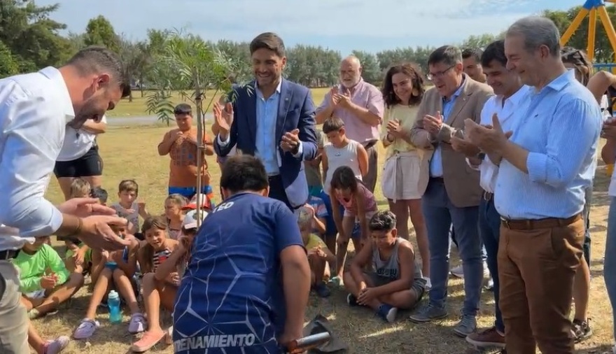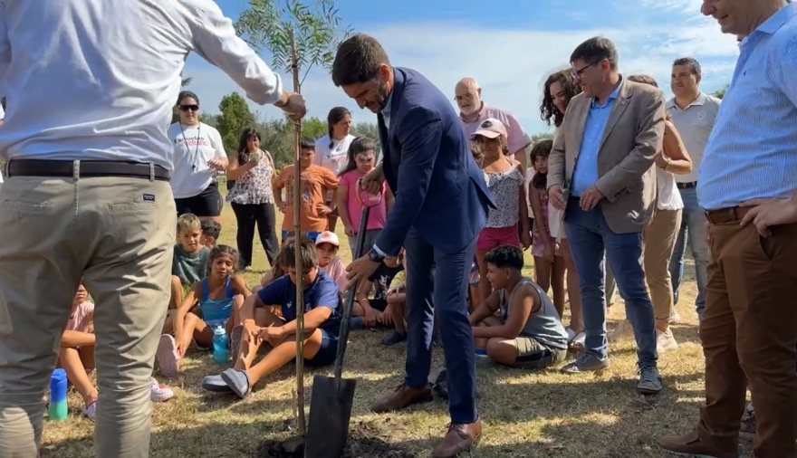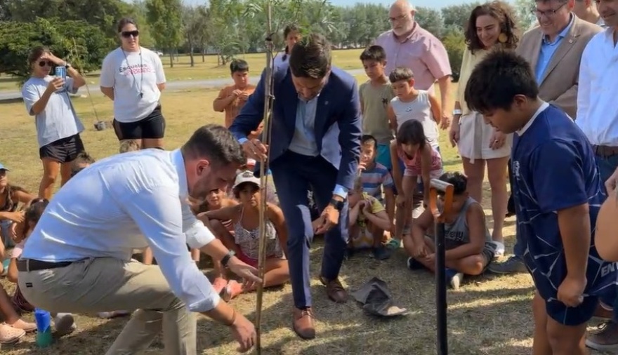 Luego recorrieron las instalaciones y los lugares en los que se desarrollan tanto la colonia de vacaciones de adultos mayores como la escuela de verano para niños, donde, el mismo gobernador junto a un niño plantaron un árbol.