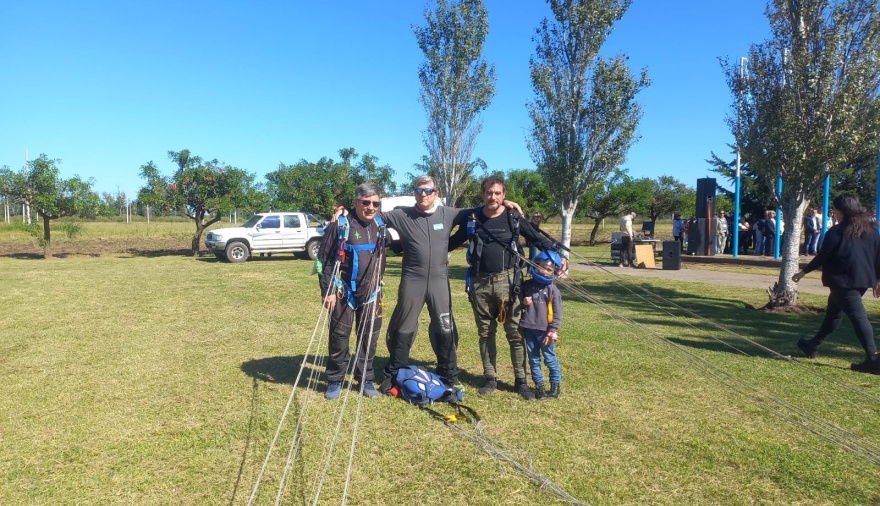 Uno de los momentos más emocionantes de la jornada fue la llegada sorpresa de cinco paracaidistas, coordinada por Leandro Noya, en homenaje a los veteranos.