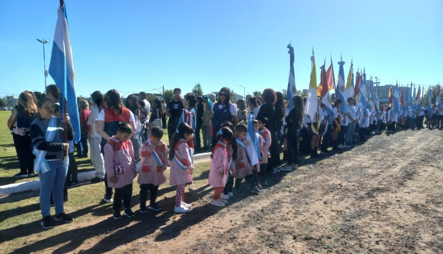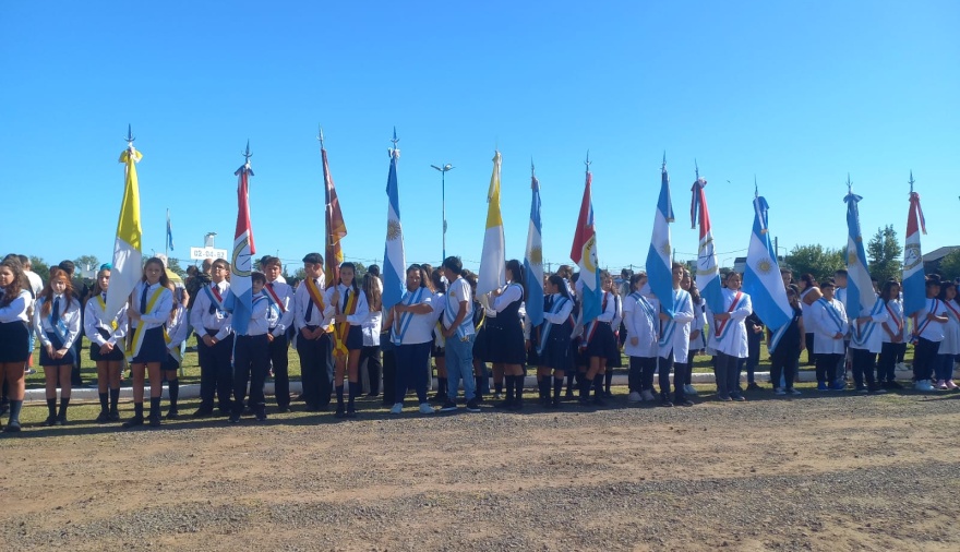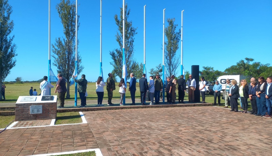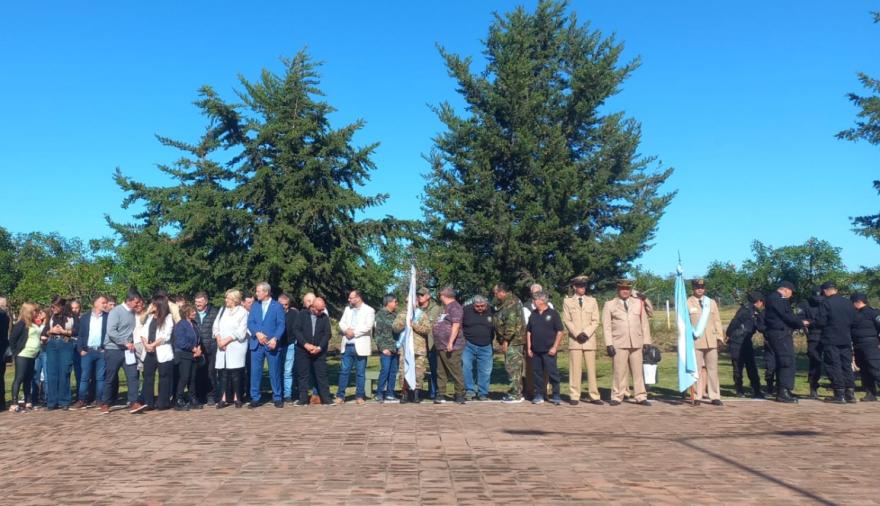 La ceremonia estuvo a cargo de la Secretaria de Cultura, Griselda Centini, con la locución de Nicolás Trabaina. Luego de las palabras de apertura, el Himno Nacional Argentino fue interpretado por Ivana Grenon, tras el izamiento de las banderas a cargo del intendente Daniel Tonelli y los veteranos de guerra. Posteriormente, se realizó una ofrenda floral ante la imagen de la Virgen de Luján, acompañada por un respetuoso minuto de silencio.