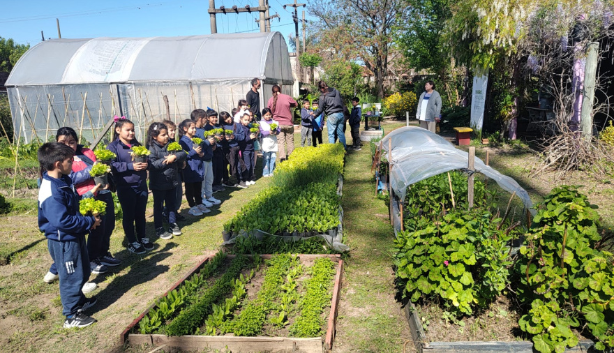 En el recorrido, los chicos conocen y aprenden cómo se trabaja en el invernadero, qué se hace en la huerta y cómo es el mecanismo para plantar una plantita en el surco.