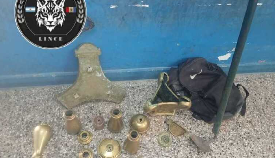 A.S. fue aprehendido en inmediaciones de calle San Martin por personal de Guardia Urbana comisionado por su presencia en el lugar donde se procedió al secuestro del interior de la mochila de 13 piezas de material de bronce de distintos tamaños, una llave paleta y un caño hueco tipo azada.