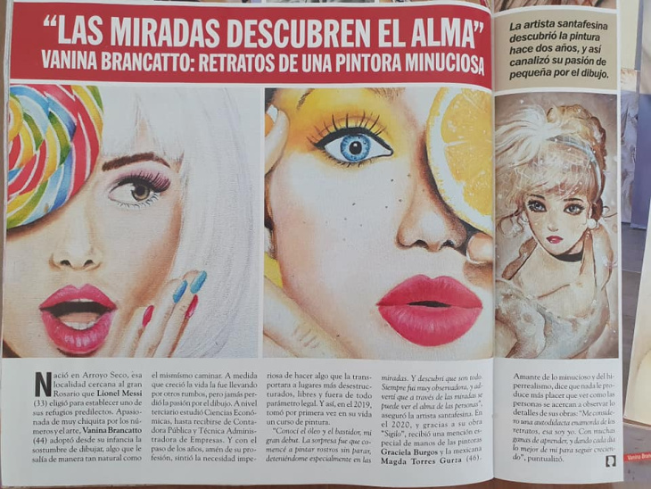 Brancatto también ha participado en muestras fuera de Arroyo Seco y ha recibido el reconocimiento de figuras del ambiente artístico y cultural, como el periodista Héctor Maugeri, subdirector de la revista Caras, quien incluso publicó una de sus obras.