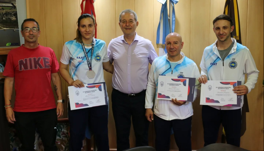 Este jueves, el Intendente Daniel Tonelli, recibió en la Sede de Gobierno Municipal a Lucila Coletta, Facundo Pugliese y Fermín Rodríguez, deportistas de nuestra ciudad que integraron exitosamente el equipo de la Selección Argentina que disputó el ITF Taekwon-Do World Championships, en la ciudad de Jesolo, Italia.