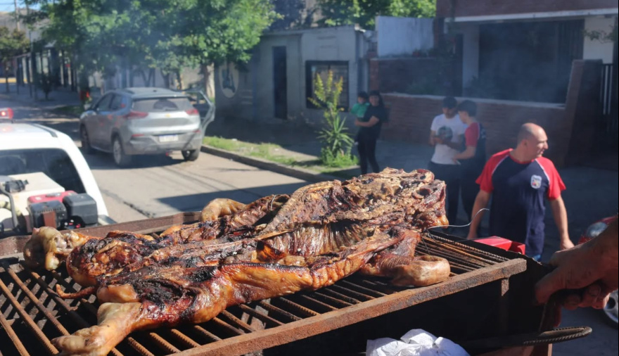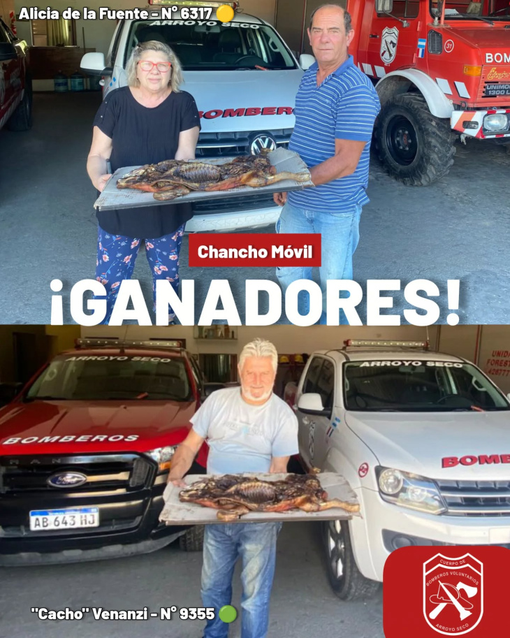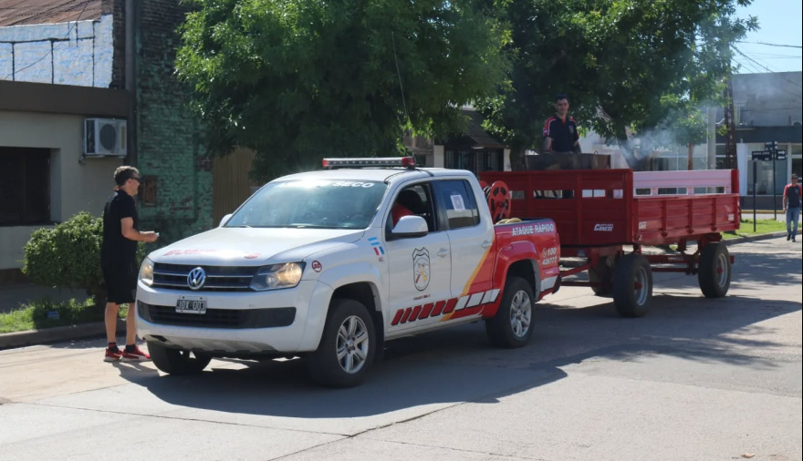 Desde muy temprano, los voluntarios iniciaron la recorrida por los diferentes barrios de Arroyo Seco haciendo sonar sus sirenas mientras en uno de los vehículos, asaban el lechón que luego entregarían como premio.