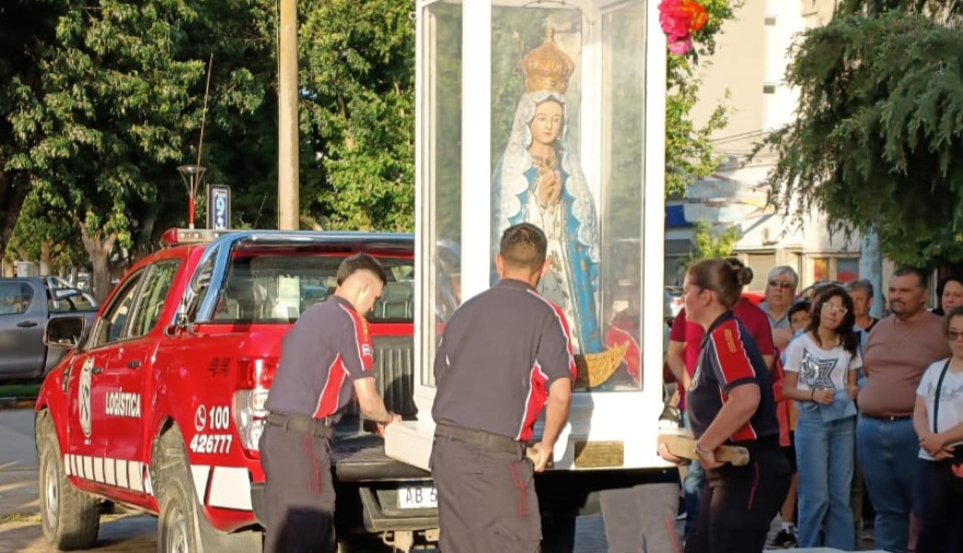 El recibimiento se realizó en el acceso sur de la ciudad, a la altura del Cristo, donde la esperaban los Bomberos Voluntarios, Porta Cristos de Arroyo Seco, autoridades eclesiásticas y un importante grupo de fieles, quienes trasladaron la imagen en caravana hasta la Parroquia La Asunción, donde se ofició la misa en su honor.