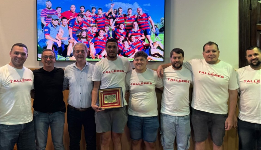 En la Sede de Gobierno Municipal, el Intendente Daniel Tonelli y el Director de Deportes Luciano Martin, reconocieron a la Primera División Masculina de Rugby del Club Atlético Talleres por consagrarse campeones por primera vez de la Copa de Oro del Torneo Clausura del Nivel Desarrollo URR 2025.