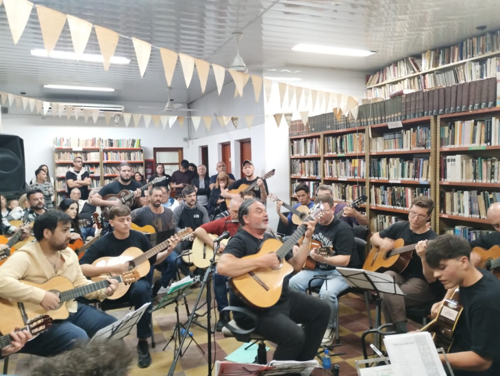 A lo largo del 2025, desde la entidad impulsaron el ciclo Acústicos en la Biblio, seleccionado por el programa Espacio Santafesino del Ministerio de Cultura. Según relató su actual presidente de la comisión directiva, Erica Trotte, el objetivo fue no solo ofrecer recitales, sino también acercar al público a la trayectoria, formación y experiencias de los músicos invitados. Ese recorrido incluyó presentaciones de Ivana Grenon, Virginia Piaggio, Angus Espinoza y una noche inolvidable del Taller Cruz y Fierro, que de la mano del profe Eduardo Sánchez regresó al escenario con una convocatoria ampliada a músicos de distintas generaciones.