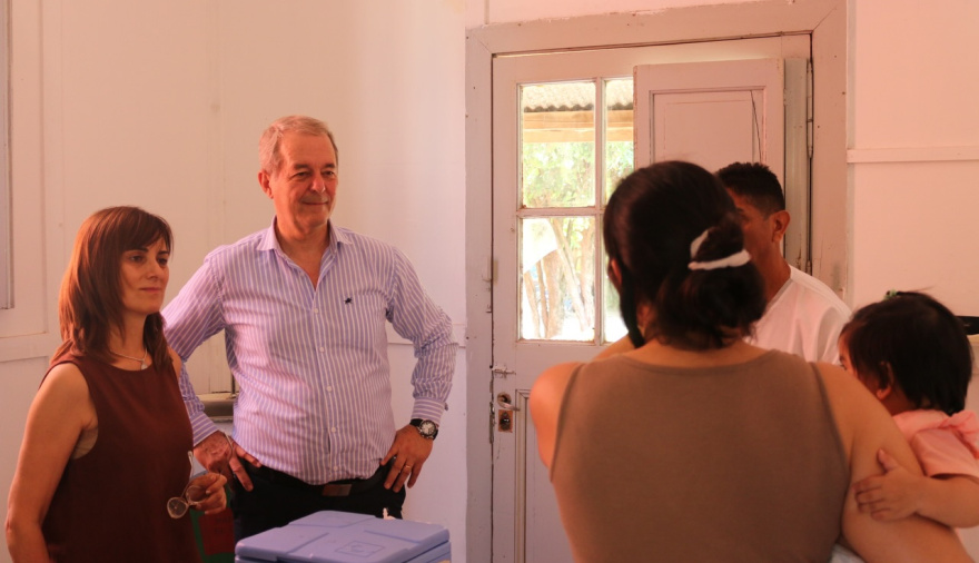 Esta mañana la directora de Atención Primaria de Salud, Dra. Carina Gres llevó adelante una nueva posta de vacunación junto a personal sanitario en la Escuela Almafuerte N° 6194 del Paraje el Ombú, donde también estuvo presente el Intendente, Daniel Tonelli.