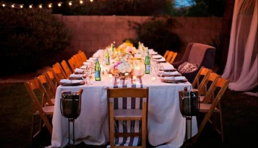 Recomendación: mesa afuera para el brindis; luego, llevamos todo adentro.