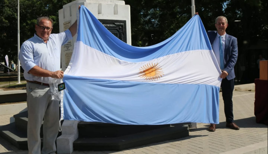 Del mismo modo, la ciudad recibió una bandera argentina para mástil, bordada a mano, entregada por Luis Simonetti, presidente de la Asociación Cultural Sanmartiniana de San Nicolás.