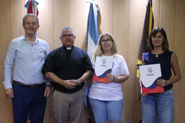 En la Sede de Gobierno Municipal, el Intendente Daniel Tonelli y la Secretaria de Salud, Dra. Carina Gres, junto al Párroco Padre Juan Javier Chiappe y referentes de CARITAS, firmaron un convenio marco de colaboración institucional entre esta institución de la Iglesia Católica y la Municipalidad.