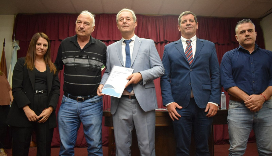 El acto inició a las 10:00 con palabras del presidente del cuerpo Jose Luis Murina, quien junto a Milagros Serra, Gustavo Delorenzi y Matías Attoresi entregó un proyecto elaborado por el Concejo para la ejecución de la Planta Potabilizadora de Agua, una obra que costaría unos 7000 millones de pesos y que no cuenta con presupuesto ni está dentro de los planes del gobierno.