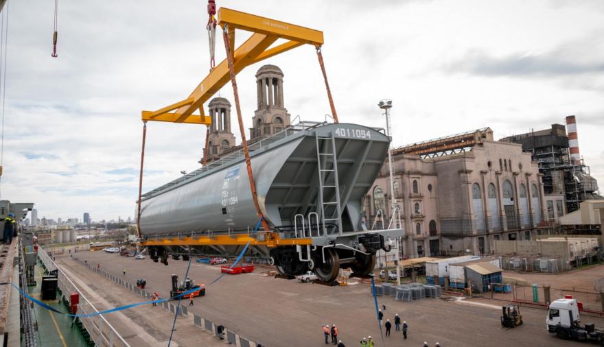 Las 45 unidades, que tienen una capacidad de carga de 55 toneladas cada una, se destinarán a la línea Belgrano con vistas al tráfico que generará el sector agroindustrial ya que según estimaciones de la Bolsa de Cereales de Buenos Aires, en esta cosecha se producirán 147,9 millones de toneladas de granos, un 13% más versus la campaña anterior.