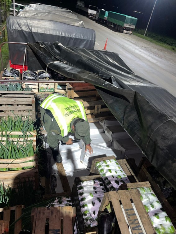 Durante la inspección, los funcionarios hallaron entre la carga de verduras más de 40 cajas que contenían pescados de la especie sábalo en infracción a la Ley 22.375. El avalúo según facturación asciende a 3.800.000 pesos.