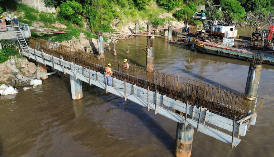 Según informaron desde el Ministerio de Obras Públicas de Santa Fe, ya se completó más de la mitad de los pilotes, vigas y cabezales previstos, y comenzaron los trabajos de estabilización de la barranca