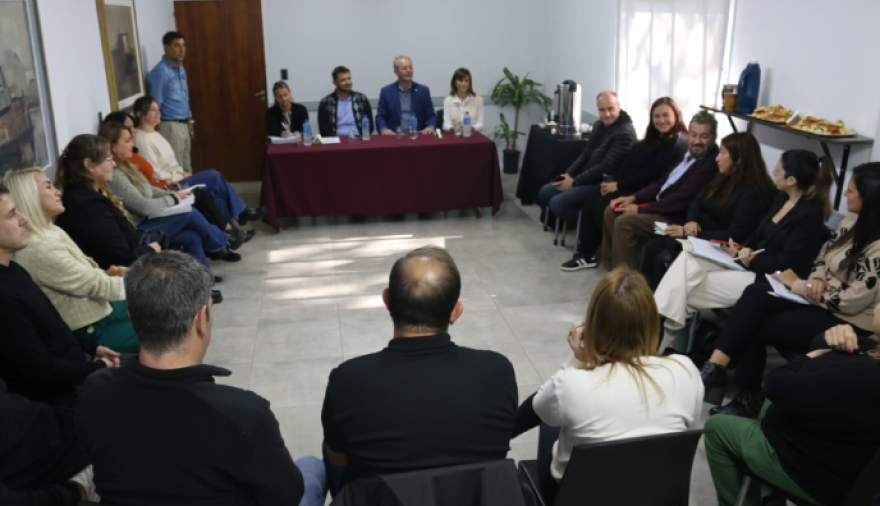 En la Sala Posta de San Martín de la Sede de Gobierno Municipal, el Intendente Daniel Tonelli encabezó un encuentro de trabajo junto al Director Provincial de Pensiones No Contributivas 5110, Ulises Puntonet, y representantes de las vecinas localidades de Villa Amelia, Zavalla, Alvear, Uranga, Pueblo Esther, Carmen del Sauce, Villa Gobernador Galvez, Soldini, Piñero, Coronel Domínguez y Pueblo Muñoz.